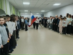 Сегодняшний понедельник начался с традиционной линейки, которую провела куратор Первичного отделения Движения Первых Пулккинен Е.В. совместно с педагогом-организаторам Ореховой Е.В