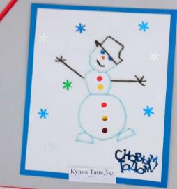 В нашей школе возле главного входа расположилась выставка рисунков и поделок, посвящённых зиме.